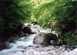 前日の雨のせいか少しささ濁りで普段より倍の水量があり、流れも速くなっているので注意をして川を渡る。仕掛けをセットしミミズのエサでまず第一投。いつもながら最も緊張する一瞬だ。しかし、アタリはなく、ふとM君を見ると丁度釣り上げたところで、こちらを見てニッコリ微笑んでいる。しかし、それから二人共アタリがなくなったので、もう少し上流へ向かう。河原を見るとカモシカらしき足跡があり、まだ新しかったのでまわりを見渡したが姿はなかった。以前この上流でいきなり落石があり、見上げるとカモシカの仕業であった。