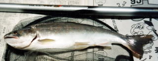 毎週のように通っていれば顔馴染みも出来てくるので、地元の方には色々な情報も教えて頂いたこともあります。本流であるが故、岩魚、アマゴ、ニジマスの大物が釣れている。ある時はその地元の方が60センチオーバーのニジマスを取り込むのを手伝ったことがあるが、その太さは鮭と変らなかったのを憶えている。最初のうちは、慣れていなかったので大物が一旦、掛かると慌ててしまう。取り込み寸前に一直線に下流へ走られてあっという間に、1.2号の糸もプッチン。