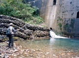 そして、忘れもしない1994年9月24日にクライマックスを迎えたのであった。この日は私とMさん、そしてネット仲間でフライマンのOさんを誘い三人で出かけていました。入渓後、余り釣れずにおかしいなあ等と言いながら、途中のえん堤に到着して竿を出すことにした。えん堤下には大きなプールがあり、その幅は30メートル弱くらいだったと思う。私とMさんは餌釣りなので中心部にはとても竿が届かないので、両側に別れて竿を出した。フライマンのOさんがメインポイントを攻めていた。