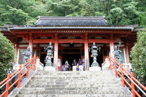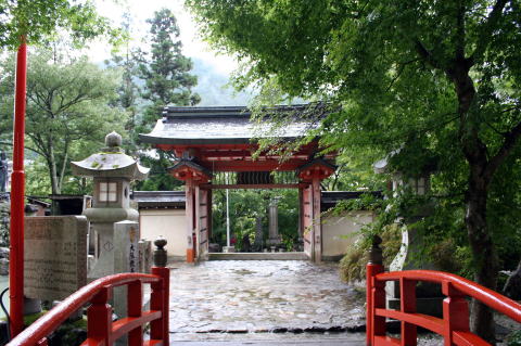 | 「今井町」を後にし、ドライブインで、名物の「柿の葉ずし」を頂く。これもたぶん初めて食べたと思う。 写真には残せませんでしたが、柿の葉に包まれたさば寿司がとても美味しかったです。 昼食後、バスはだんだんと山奥へと登って行く。朝に聞いた通りの狭い道が続き、運転手さんも苦労しながら、対向車とすれ違う。また、途中の「黒滝村」で休憩していると小雨も降り出してきた。 そして、いよいよ、午後3時、奈良県天川村に到着した。 「天川村」は、名のとおり、満天の星と清流に恵まれて、鍾乳洞、渓谷、温泉、名水と癒しの宝庫といっても過言ではない。 小雨の降る中、最初に訪れたのは、全国修験道の根本道場の「龍泉寺」である。 役行者が、修行中に泉を発見し、八大龍王を祀り、水行をしたという霊場で、境内には入峯前の水行場がある。 |