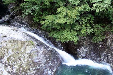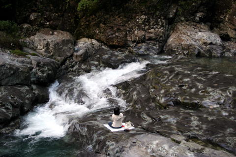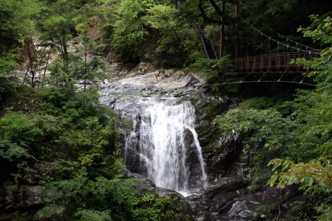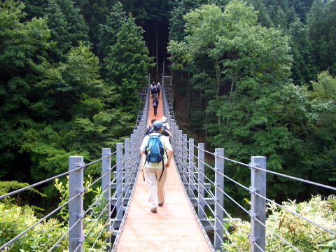 | さて、2日目です。最初に「御手洗渓谷」の散策へ行きました。 御手洗渓谷は大峯山系を源流とする清らかな清流が流れ、近畿随一の美しさとうたわれ、奈良県を代表する渓谷です。 入り口となる吊橋を渡ると遊歩道が現れます。苔むす道を歩いて行くと、巨岩がゴーロを成す迫力に「川迫川」の大きさの片鱗を見せ付けられます。 |