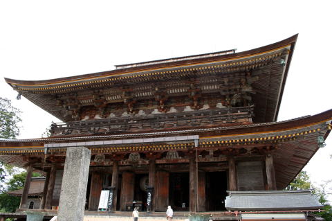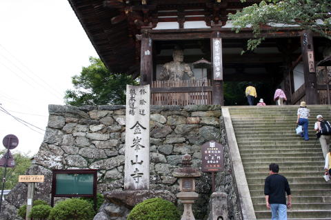 | しばし、御手洗渓谷の滝からのマイナスイオンに浸り、下界の雑踏から抜け出した気分であった。 この後、吉野に戻り昼食の時間です。名物なのか「茶がゆ」が出たのですが、私の口にはどうしても合わなかったです。 その後、いよいよ役行者が開創した修験道の根本道場である「金峯山寺」へ向かいました。 |