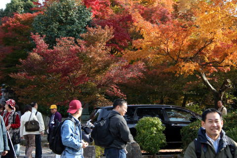 | 一年ぶりの京都です。 いつものように朝は早い。午前4時半起床、そして5時半前に自宅を出て、途中で「森南君」を乗せて、内藤家に向かう。ここで内藤号に同乗させてもらい午前7時半に出発した。途中で加古さんを拾い、桑名で大須賀さんと合流し今回参加の全員がやっと揃いました。 すでに時間は、9時近いです。 眠た〜い、お腹すいた〜。結局、非常食のパンを食べました。 さすがに休日とあって京都東インターも混雑していた。インターを抜けて「毘沙門堂」に車を止めるが、途中の参道にも人が一杯です。 15分ほど歩いて、「山科駅」に到着。駅前のうどん屋さんで早めの昼食を取る。そしてここからから地下鉄に乗って最初の目的地の「真如堂」へ向かった。今年も地下鉄・市バスが一日乗り放題で1,200円の一日券を購入したが、そこまで周れるかは判らない。 真如堂に向かう道も人の波。紅葉シーズン真っ盛りとあってはしかたのないことか。写真を撮るにも順番待ち、本堂へも並んでの見学となりました。 |