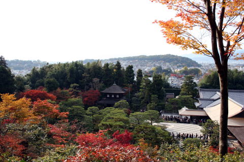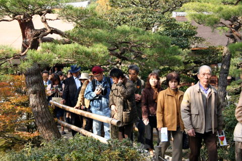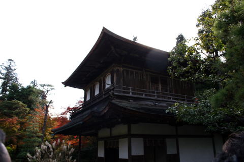 | 一旦休憩をし、今度は「哲学の道」を経由して、銀閣寺へと向かった。その「哲学の道」も人の波、なんとかかき分けて、銀閣寺へと到着したが、入場券を求めるにも長い列が出来ており、愛知万博までとは言わないが、日本人は本当に並ぶのが好きな人種と思いました。 忘れていましたが、ベタではありますが「銀閣寺」といっても金閣寺と違って、色は違うんですね。正式名称は「東山慈照寺」っていうらしい。足利将軍だった? |