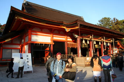 | ここからバスに乗り換えて「東山参道」へと向かった。 バスも超満員状態、しかも、道路も大渋滞。30分以上もバスに乗っていたが、停留所で止まっても誰一人乗れない状態が続き、「祇園」に到着となりました。 バス停は「八坂神社」の前だったので、最初に見物となりました。 その「八坂神社」を参拝後は、「ねねの道」を通り、豊臣秀吉の正室・北政所のねねの眠る「高台寺」へと向かいました。 |