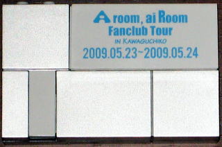 | 実は、このツーショット写真、私的には大失敗だったのです。 何と寝てました。っていうか目をつむっちゃってました。(;_;)帰ってから何とか補正をしましたが、とりあえずグラサンでカバーしときました。(^_^) やがて東京組も到着し、全員が写真を撮り終えるまで施設の中を見学しました。 今日の夜は、この会場でスペシャルライブもあるので楽しみです。バスに戻ると駐車場で臨時の売店があり、今年の全国ツアーで販売するグッズを特別に販売していたので、しかりと購入しました。 その後、各宿泊場所まで別れて移動し、チェックインした。 |