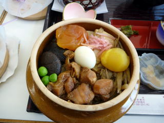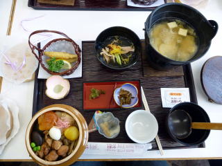 | その後、諏訪まで移動して「峠の釜飯」でおなじみの「おぎのや」さんで昼食をとりました。 最後にあいちゃんはから一人一人に握手をしながらお別れの挨拶となりました。お土産に饅頭もくれました。 名古屋組のバスの出発は最後となったので、あいちゃんやスタッフが見送ってくれました。 |