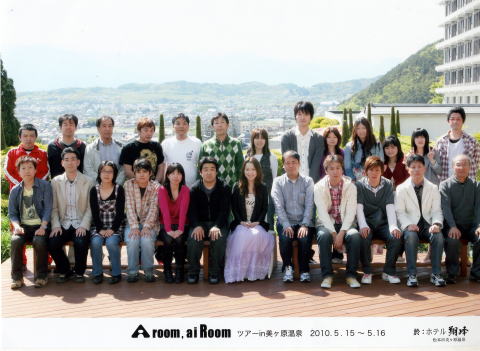 | FCツアーに今回3回目の参加です。 午前10時集合であるが、9時半には到着。集合場所の「銀の時計」付近には誰もいない。ちょっと一服後に戻ってみると既にたくさん集まっていました。ほとんどは見た顔が揃ってます。受付を済ませ知り合いと話していると受付順に並んでいることに気づいたが、先頭集団に混じってしまい恐縮。後ろの方に謝るとバスは自由席だから別に関係ないですよと気軽にこたえてくれた。 一人の方が遅れているようで出発時間の10時半になっても出発できない。結局その方とは連絡がとれずに10分遅れで出発した。 バスの中ではあいちゃんの挨拶がDVDで流された。また、今年のバースデイライブのDVDも流されたが、画質も荒く、音響もさっぱりであった、参加出来なかったので見られただけでも良しとしよう。 バスの中では、あいちゃんへの質問用紙と、今回のライブ曲目当てクイズの用紙が配られました。曲目には構成や好きな曲を交えて8曲を記入した。 途中の恵那峡SAで昼食をとり、午後2時には会場の長野県美ヶ原温泉の「ホテル翔峰」 に到着。だが東京組も渋滞で到着が送れ、そかもあいちゃん達もまだ到着していないとの事で、バスの中で30分程待たされて少しイライラした。 やっとバスから降りると直ぐにグループごとにあいちゃんと集合写真の撮影が始まった。 私は運良くあいちゃんの真後ろの位置でラッキーでした。撮影後はホテルの部屋に入るとプレゼントの「歯磨きセット」と記念のメッセージカードが置いてありました。昨年は記念品はライブ終了後に本人からの手渡しだったのに今回は違い残念だ。 |