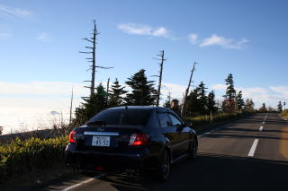 | 新車の慣らしを兼ねて群馬県にある「白根山」と周辺の温泉を巡りにドライブに行ってきました。 10月22日夜10時過ぎに出発、中央道の「多治見インター」から長野自動車道の「小布施SA」のハイウェイオアシスまでぶっ飛ばし、3時間ちょっとで到着し朝まで仮眠をとった。 夜明けとともに出発し、燃料補給と朝食を購入。「志賀中野有料道路」を経由し白根山へと車をすすめた。 湯田中温泉を過ぎるとワインディグが始まり、高度もどんどん上がってくる。 車の高度計が2,000mを越える頃には雲の上に出た。外気温はマイナス4℃まで下がり寒そうだ。 まだ慣らし中なので無理にコーナーを攻めるのはしないが、車は気持ち良く加速してくれる。 だが、あまりの景色の良さに我慢できすずにあちこちで写真を撮り始めた。 |