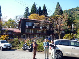 | しばらく車を進めると「ウリ坊」が車にはねられたのか道路に横たわっていた。道幅が狭いので対向車に気を使いながらさらに行くと「鳩ヶ湯温泉」に到着した。 ここで上から降りてきた人達に様子を尋ねると、上流にある「刈込池」にはかなりの車が入っており、道が狭いので大渋滞となっていると教えてくれた。またこの上流では工事も行われているようで、ダンプが行き交っている。 まあ行ける所までいってみようと車を走らせた。 |