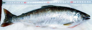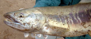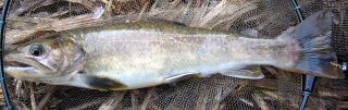 手取川のサケ 2003年11月24日 釣人(とっちんのおじさん) (76センチくらいかな?) |