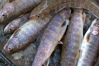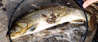 有峰湖周辺の泣き尺イワナ 2002年7月28日 釣人(隊長) |