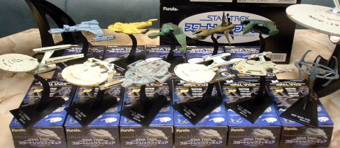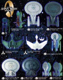 「Furuta」スタートレックフィギュア登場 1.U.S.S.エンタープライズ (NCC-1701-A) 2.U.S.S.リライアント (NCC-1864) 3.U.S.S.ディファイアント (NCC-74205) 4.U.S.S.スターゲイザー (NCC-2893) 5.U.S.S.イクワノックス (NCC-72381) 6.ディープ・スペース・ナイン 7.クリンゴン・バード・オブ・プレイ 8.クリンゴン・アタック・クルーザー 9.生命体8472のバイオシップ 10.カーデシア・ガロア級戦艦 11.ロミュラン・ウォーバード(Secret) |