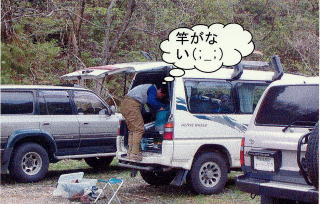 | 各ポイントで竿を出すと、まずまずのサイズのイワナが釣れてきた。も少し上流の様子を見に行こうと車に乗り込もうとした時、事件は起こった。 「あのぉぉぉ・・・、まだ奥に行くのぉぉぉ」と小さな声で遅ちゃんが不安げな顔をして言ってきた。 「どうしたんやねん」と聞くと、 「いやあ、まんだいいんだけんど、ワシの車の燃料が少し足りないもんだでぇ・・・(>_<)」 「この奥にスタンドありますかねえ」と遅ちゃん。 「とぼけたこと言ってんじゃねえ」とつかさくんは怒り心頭。 こんな奥に来てスタンドなどあるはずもない、桐やんは助手席でドーナツを咥えて知らんぷりしているし、他のみんなも呆れ顔。結局、ここを諦めて下ることにしたのだった。 |