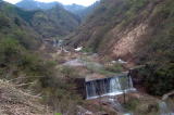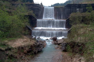 | さて、上市川から早月川へ移動することにしたが、道を間違えてしまい右往左往状態で、挙句の果てには工場の駐車場に迷い込んでしまった。そしてつかさくんが急にブレーキを掛けて止まったので、どうしたのかなと思ったら、20センチ程の段差があり、もうちょっとで落ちる所であった。でも前を走っていた「根こそぎ号」は既に姿がなく、そのまま突っ切ったとしか思えない。後で聞いたら車内はパニック状態で、子供も泣き出し大変だったようだ。 その後、何とか上流へ向かう道へ入ったが、箕輪地区で通行止めになっていて、「小早月川」に進んでしまった。でも結構いい渓相であった。 |