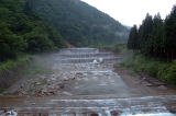 | 午前5時半、少し暑苦しくて目が覚めたので出発した。前回は道を間違えたが、今回は大丈夫だ。箕輪を過ぎて見覚えのある景色が見えてきた。道横の雑草がかなり伸びており走りにくいが何とかポイントに到着した。 川通しで降りるつもりだったが、背丈以上に伸びた草に戸惑い、仕方なく少し離れた踏み後から降りることにした。だがこちらも草が長くて、おまけに雨も降り出してきて歩き難いといったらこの上ない。 すぐに川原には出られたが、水量が少なくてガックリ。しかも、ここから上流へ遡行しようと思っていたが、直ぐに堰堤が現れてしまった。早速竿を出すが、釣れてくるのは全てリリースサイズばかりで、結局諦めました。 |