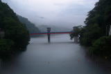 | この後、他の川も行ったが雨が強くなり気力も削がれてしまったので、常宿「どやまらんど」に行くことにした。 途中の「パルフェ」で夕食の買出しをして、「愛本橋」から黒部川を見ると、「もや」が川全体に立ちこめて幻想的な風景になっていたので、思わず写真を撮りました。 |