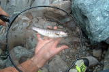 | 【今回の釣果】 日時: 2003年6月15日(日) 天気: 曇りのち晴れ 場所: 新潟県 青海川 釣果:イワナ 16〜29.8センチ 18匹くらい(二人の釣果) 尚、本日も食べる予定がなかったので釣った魚は全てリリースとなりました。(^_^) |