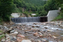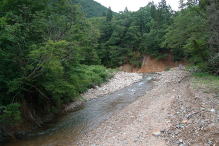 | 最初は一色川で竿を出そうと予定していたのだが、余りの人の多さで諦めて、相談の結果「六廐川」に向かうことにした。国道158号線を北上して「軽岡トンネル」を越えて左折すると、緩やかな流れが見えてきた。ここでも釣り人の車がたくさんあり苦労する。大蓑谷の支流の所で一台車が止まっていたが、多分本流へ行っていると思い、我々は支流へ別れて入った。私とつかさくんは大蓑谷の最初のえん堤で竿を出した。小さなアタリはありエサを取られるのでチビかなと思いながら粘ったが結局だめで、つかさくんもしばらくして根掛かりしてしまったようだ。そうこうしているうちに雨も降り出してきたので一旦車に戻った。 |