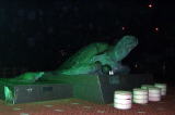 | 今回は、2回連続ボーズという忌まわしい記憶を一掃したくて、この時期に大量発生するアブの恐怖をも帰り見ず、ただ釣りたい一心だけで強行出発とした。 ところが、直前に参加予定していた「遅ちゃん」が都合で参加できなくなり、私とつかさくんの二人での釣行となった。常宿の「どやまらんど」が夏休みということもあり、バンガローが満杯状態でテント泊になるので、一人減るのは作業的にもつらいところである。 いつものように午後9時出発となり、途中の郡上八幡でエサを購入し、高山経由で富山インターから高速に乗り、親不知インターには午前3時に到着した。道の駅で仮眠を取る為、駐車場に車を止めて日本海を見ると何やら怪しい声が聞こえてきた。しかも若い女性の声だ。次第に目が暗さに慣れてきて、目を凝らしてみると、やはり若い女性が3人で海岸の砂浜で、はしゃいでいた。そして、こちらに向かって歩いてきたので、よく見るとバケツを持っているではないか。潮干狩りでもしていたのだろうか?よく判らない人たちだ。 また、彼女らが去って行った後、変な声がまた聞こえてきたので、よく見ると今度はアベックが戯れていた。(夏ですねえ)なんて言いながら仮眠を取りました。 |