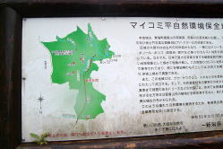 | 道路脇にある看板によると、ここは「マイコミ平」という場所で、黒姫山の南東部で、「田海川」の源流域に位置し、日本最大の深度を有する垂直型の洞穴群が存在しているとのことであった。 だが、この看板によると「とうり谷」や「赤滝谷」等の数々の谷が存在している。たぶん「大ちゃん」はこの谷の事を教えてくれたのだと思う。だがその時、熊もたくさんいるから気をつけてと言われたのもしっかりと覚えていた。そう言えば前回も途中で熊の糞らしき物を見た事があった。今回は二人きりだし、雨もかなり強くなってきたので、次回にそれなりの装備をして何人かで再び訪れて見たいと思い、戻ることにした。 |