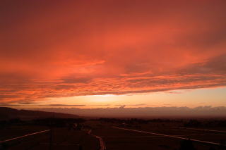 | この後は、常宿の「どやまらんど」に向かった。今年一年何回も利用させて頂き、また来年もお世話になるし、多少の無理も聞いていただいた御礼に名古屋名物の「ういろ」を渡しました。 荷物を降ろした後、夕食の買出しをし、宴会の準備とした。外は雨も上がり綺麗な夕日で染まっている。たぶん明日は快晴だろう。 |