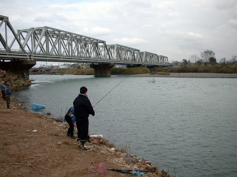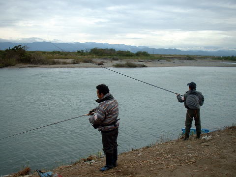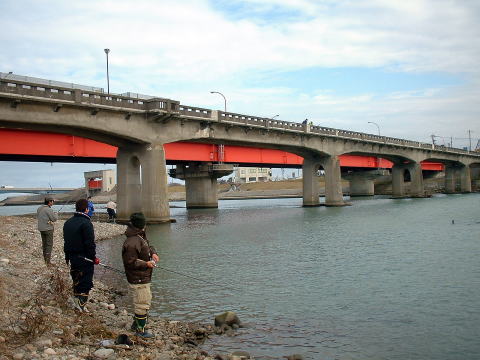 | 【今回の釣果】 参加者:とっちん、武ちゃん、加藤さん、隊長、以上4名。 日時: 2003年11月10日(月) 天気: 曇り 気温12度 場所: 石川県 手取川 釣果:なし |