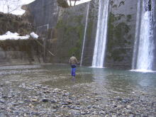 | 歩き始めて30分もしないうちに釣り場には到着できた。昨年とはほんとうに大違いで、楽に到着できたのであとは釣るだけである。ただ、昨年の終りにこのポイントは余り思わしくなかったので、魚が残っていてくれるのだろうかと少し不安になる。 以前よりもやはり水深の浅くなっているが、とりあえずつかさくんから竿を出した。 |