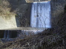 | しかたなく、私たちは直ぐ下のえん堤まで様子を見に行く事にしたが、すでに雪の上には足跡がしっかりと刻まれており、余り期待は出来なくなりました。でも、まあせっかくだからと、とりあえず竿を出すと第一投目から、20センチ程のイワナがヒットした。そして再び仕掛けを泡の中に沈めると再び同サイズのイワナが釣れてきた。普段よりも水量が少し多目で、対岸に渡ることが出来なかったのでここで引き上げることにした。 |