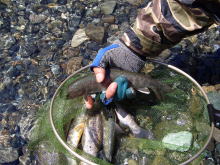 | 【本日の釣果】 【日 時】 2004年3月27日(土) 【参加者】 つかさくん、隊長 【天 気】 晴れ 【場 所】 新潟県青海川 【釣 果】 イワナ 20センチ〜28センチ程を8匹。 【感 想】 今年最初の渓流釣り、天気も良くてのんびりできました。 青海は今年も健在!!かな? |