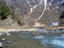 | この後、下流の発電所下へ移動し、少し竿を出してみたが、釣り人も多くて30分程挑戦はしたが、アタリもなかったので本日はここで納竿としました。 尚、今回は日帰り予定であったが、疲れを癒す為、親不知の「まるたん坊」で風呂に浸かった後、黒部に戻り、「どやまらんど」や「愛本橋」近辺を散策しました。その後、お土産「ますの寿司」を買い、帰路につきました。 |