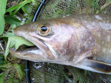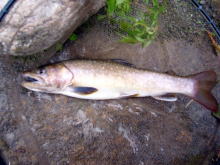 | 【今回の釣果】 【日 時】 2004年4月28日(水)〜 5月1日(土) 【参加者】 とっちん、武ちゃん、隊長 【天 気】 晴れ 【場 所】 富山県小早月川、早月川、黒部川、上市川、新潟県青海川、境川、 【釣 果】 イワナ 18〜32.5cm 50匹弱位かな(3人で) ヤマメ 18cm程 2〜3匹 ニジマス 19cm程 1匹 【感 想】 今回はつかさくんが参加出来ずに残念でした。 それと人数も少なくて夜も静かになってしまいました。 来年はみんなで是非来たいですね。 |