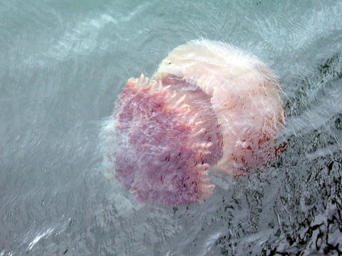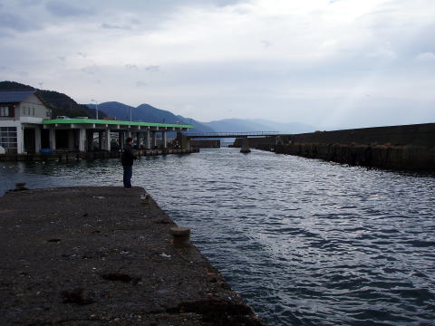 | やってきました2005年度、手取川の鮭釣りツアー。今年で5年目の挑戦である。 久しぶりの当選で勝負ルアーも買い揃えてある。今回は前日の6日から出掛けて、アオリイカを釣る予定もある。 今回は、とっちん、武ちゃん、今回初めての斉藤さん(とっちんの同僚さんかな)と、私の四人である。そして翌日には、手取川で桐やんが合流する予定である。 さて、自宅を7時半に出発し、とっちん宅には9時前に到着したが、とっちんの車が無いので、おとうさんに聞くと、「誰かを迎えに行ったで少し待っとりゃ」と言われた。 だが少しして、とっちんから電話があり、「何処におる?」なんて聞いてきたので、 「家の前におるよ」というと、とっちんの会社が集合場所だと言うではありませんか。 「え〜、どこやんそれ?聞いてないよ〜」。何せ土地感のない場所なので、電話で案内をしてもらい、30分もかけてやっと合流することが出来たのでした。 さっそく荷物を積み替えて出発となりました。だが、名神高速に入ってすぐに雨が降り出してきた。敦賀インターを降り、越前海岸へ向かう頃にはだんだんと風も強くなってきた。 風のあたらない入江や、港の堤防内を探して、所々で竿を出したが全く釣れなかった。しかも、至る所に越前クラゲが大量に発生していました。 |