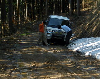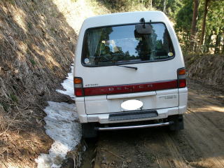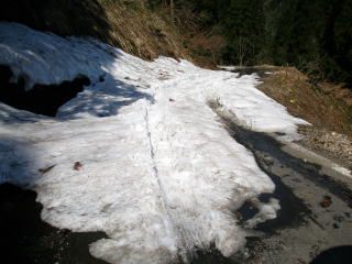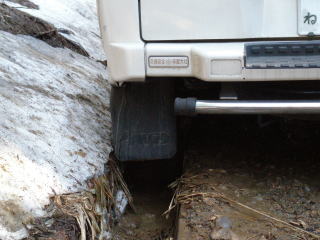 | 今年最初の渓流釣りは、『根こそぎ隊GWツアー』となりました。 出発日の4月28日は、遅くまで仕事が残り、つかさくん家を出発したのは午後11時となってしまいました。 「アルプ飛騨古川」で、「とっちん・ひろくん組」と合流した後、富山県の大沢野の手前にある「道の駅細入」で、「遅ちゃん・桐やん組」と合流した。ついでにここで2〜3時間の仮眠をとった。 仮眠の最中に、私は怖い夢をみて何度もうなされた。眼が覚めてから目の前を見ると助手席のダッシュボードに怖い顔をした人形の首が補助バーに引っかかっていました。これが原因だったのかなとつかさくんと話していると、「いびきがうるさいので、途中で首しめたったがや!」だって・・・。(;_;) 今年は雪も多く残っており、車から出ると肌寒く感じる。全員が起きてきたところで出発とした。最初の目的地は、とりあえず近場の「白岩川」にでも久しぶりに行ってみよまいということになった。 国道41号線を途中で右折し、「熊野川」、「常願寺川」と渡ると「白岩川」である。土砂崩れなどもあり、所々で通行止めがある。また、残雪もあるので奥に行けない。 途中で引き返す時に最初の事件は起きたのです。 全員が順にバックしようとしたが、最初の遅ちゃん号が動かないのでどうしたのかなと思って見ていると、遅ちゃんと桐やんが車から降りて、車の下を覗きこんでいる。何かトラブルなのか?。どうやら、左のタイヤが雪の中の側溝に落ちてしまい動けないようだ。すぐに助けに行こうとしましたが、報道マンの血が騒ぎ、とりあえずデジカメだけは握っていました。 それでも、つかさくんのランクル号に牽引されて何とか脱出することができました。 |