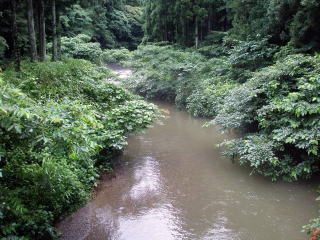 | 梅雨の真っ只中、根こそぎ隊は今日も出撃する。 今回は小隊長の「しんくん」が久々に登場である。こうなれば是が非でも釣れる場所に行かなくては・・・。 そんな事を思いつつも、天気は最悪の状態。しかも大雨洪水警報まで出ている始末。 今回は色々あって、人数も減ってしまい、一台の車で出発となった。 7月15日(土)夕方に「つかさくん家」に到着し、しんくんと共にとっちんを迎えに行く。 途中のうなぎ店で夕食をとり、活力をつける。だが、とっちんがまだ仕事が終わらないとの事で、前祝で生ビールで勢いをつけた。 何とか午後7時には出発することが出来たが、国道41号を北上するにつれ、雨も激しさを増してくる。仮眠所の「親不知ピアパーク」には午前12時過ぎに到着したが、連休と雨のせいなのか、高速下の駐車場は車で一杯になっている。 とりあえず、缶ビールで乾杯し今回の釣りの無事を祈願する。その後、何とか場所を確保し、テントを張って仮眠した。 とっちんは途中でお腹の具合が悪くなったようで、何度もトイレに駆け込んだと言っていたが、私は殆んどそんなことは気が付かなかった。 そんなとっちんに起こされたのは朝の5時半頃。そそくさとテントを片付けて出発とした。 国道8号線から見える「青海川」は、濁流で凄いことになっていた。コンビニで朝食を買った後、「田海川」へ向かった。道路から竿も出せるし、しんくんにはもってこいかなと思っていたのだが、到着してみると、ここも川はカフェオレ状態となっていた。しかたなく支流へと向かった。 |
