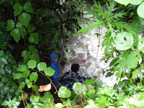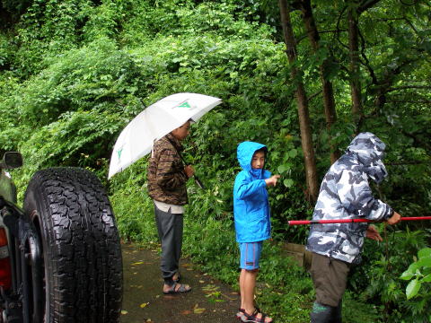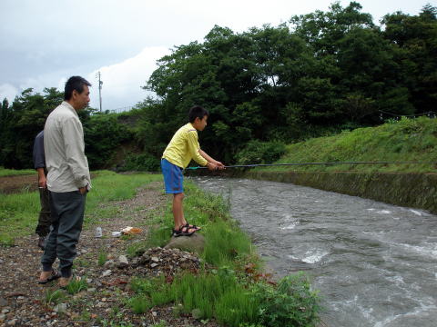 | この後、最後の釣りになるであろうポイントに入ってみたが、雨で増水した川にはポイントは少なくて、しんくんもさかんに粘っていたのだが、最後には石を投げ始めたのでここで納竿とし、早めに岐路についた。 |