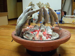 | 夕方、ひろくん達と連絡が取れ、近くのスーパーで合流して夕食の買い出しをした。 みんなが夕食の準備をしている間に私はお魚ちゃん達を捌き、塩焼きの準備を進める。今晩は野菜やお肉タップリの豆乳鍋を頂き、その後そのスープにラーメンを入れてとても美味しく頂きました。 岩魚の塩焼きもみんなが美味しく食べてくれました。くれましたってことはそう、私とつかさくんまではまわってこなかったんですよ(^¥^)、まあ予定通りとつかさくんがほくそえんでいました。 |