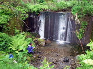 | 最終日は朝から予報通りに雨となってしまいました。 前日までとは違って少しゆっくりと起きた。それでも7時頃かな。コーヒーを沸かし、ウインナを炒めてホットドッグにして食べた。雨ですることも無いのでゆっくりと荷物の整理をしてどやまらんどを出たのが8時半過ぎでした。 ゆっくりとスーパー農道を走り、国道41号線に出ていつもの鱒すしの「源」に立ち寄り、お土産を購入する。 その後、時間も早いので「神通川」の支流に立ち寄ってみた。 雨の中、えん堤のポイントへ行ってみたが、エサの具合も良くなくて釣れなたっかようだ。 昨年の帰りは良型が二匹程釣れた記憶があったのであるが・・・。 |