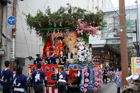 | 東北自動車道の「十和田インター」に乗った時、9時5分だった。しまった、9時までに入れば通勤割引が適用されたのに・・・。気が付くのが遅かった。「わんこそば」のお店は11時から開店との情報があったので、つかさくんもゆっくりと運転をしていたのだった。 「盛岡」には10時半前には到着した。インターから市内までは10分ほどである。市内に入ると何かのお祭りらしく、「山車」を引く姿があちこちで見かけられた。そのせいか少し渋滞気味である。 何とか駐車場を見つけて「山車」の写真を撮りながら、「わんこそばの東屋」を探した。 開店までは少し時間があったので、「山車」を見学した。 地元の人に尋ねると「盛岡八幡宮大祭」で300年も続いている「盛岡山車運行」だそうで、パンフレットも配っていた。その雄大な山車にしばし見とれた。 |