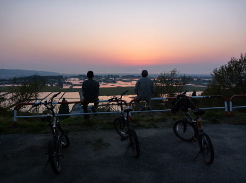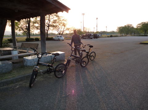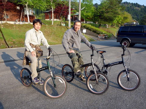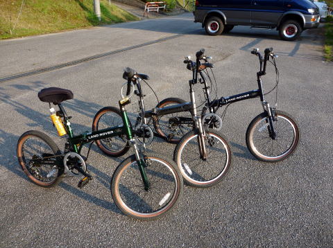 | 「明日キャンプ場」に到着しチェックインした。今年の4月からは町営ではなく、別の民間会社が委託を受けて管理すると聞いていたので、新しい管理人がいるのかなと思っていたが、昨年と変わらず、あの大田君がいるではないか。 ちょっと拍子抜けしたが、三日間お世話になるのでいつものように手土産を渡して挨拶をした。 さて、そそくさと荷物をバンガロー内に放り込み缶ビールで一息つくと、さっそく例のものを車から降ろして組み立てた。 「LAND ROVER」の組み立て自転車だ。三色あるので皆で色違いで決めてみた。 私はグリーンが気に入っていたのだが、既に遅ちゃんが買っていたので、ブルーとなった。 今回はこの自転車で「どやまらんど」の周りを載りつくそうという計画だ。車では入れない場所にも行けるので、何か新しい発見も生まれるのではという期待もある。 組み立てていると、老夫婦が近寄ってきて、『優雅な楽しみがあっていいですなあ』などと話しかけてきた。 面倒なので、遅ちゃんに話し相手をまかせ、つかさくんと私は後ずさりしながらその場を離れた。 |