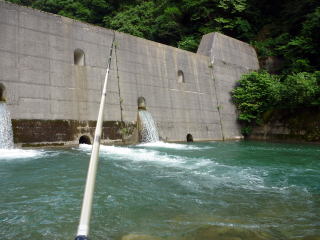 | 時間はまだ10時だし、どこへ行こうかと思案にくれる。とりあえず最初の予定とおり小川の上流へ向かってみた。 下流は濁りがあったのだが、途中の支流から濁りが合流しているのが判明したので、上流の支流へ向かった。 「朝日小川ダム」を渡り、「相又谷」を目指す。だが「蛭谷」まで来た時上流を見ると大きな重機が川の中で動いているのが見え断念となった。 一旦、8号線まで出て美味しいお蕎麦屋さんで昼食をとると、つかさくんもやっと回復したようで安心した。 午後は「片貝川」へと向かうべくスーパー農道をぶっ飛ばす。上流の「南又谷」へ向かう途中、土曜日なのに何故か全く釣り人の姿は見かけない。途中にはオートキャンプ場まで出来ていた。 そして到着した時には雲行きも怪しくなってきたので、さっさと釣りを始めた。しかし以前のポイントは全て砂で埋め尽くされており、水量も多くて釣りにならなかった。そしてさっさと撤収した。 |