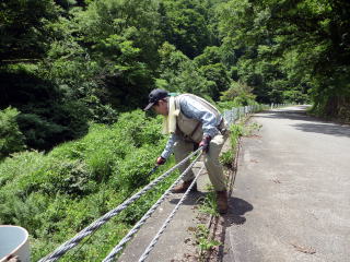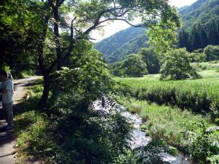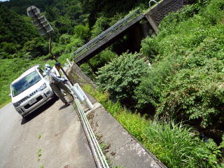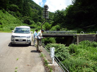 | いままで九頭竜では一度も竿を出したことが無かったのだが今回はその機会に恵まれたので行って来ました。 日帰りということもあり、早朝5時につかさくん家に到着。5時半には遅ちゃんも到着し、シエラでは3人乗車は辛いのでD5での出発となった。 高速で「白鳥インター」を降り、「めだか釣具店」でヒラタを購入し、九頭竜へと向かった。以前はホームグランドとしていた「つかさくん」の案内で支流を目指した。 国道158号線の「箱ケ瀬橋」を渡り、「久沢川」へ行ってみたが、草木が両側から伸びていてどうにも入れずに断念となった。次に「笹生川」で少し竿を出した。 車の周りは「アブ」の大群が押し寄せている。防虫スプレーを体中に振りまき釣り仕度をした。 道路の上から竿を出してみると、仕掛けが蜘蛛の巣に掛かってポイントまで振り込めない。そしてその蜘蛛の糸が仕掛けに絡んで何ともならない状態だった。やっとのことで振り込んだが小さなアタリが一度あっただけであった。 |