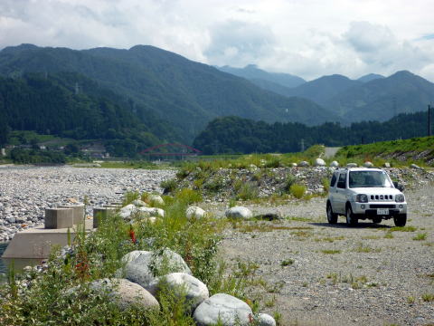 | 台風12号が接近中でその進路も気になるところではあるが、予てからの計画で富山ツアーに出発となった。 8月31日の朝7時につかさくん家を出発、途中で郡上八幡の「もりした釣具店」でエサ購入し「せせらぎ街道」を駆け抜け高山の「国八食堂」には12時に到着した。 だが、残念ながら「本日休業」の看板。たしかお休みは月曜日と思っていたのでガックリでした。 仕方なく、近くの新しいラーメン店に入ってみたが、次は寄らないだろうという意見が二人で一致した。 昼食後はもちろん神通川支流の尺物ポイントである。 今回は専用に4本もの仕掛けまで用意してあるのだ。問題は暑さだ、前回も汗だくになって退散したという忌まわしい記憶が残っている。 暑い中、粘ってやっと一匹掛けた。 なにせ8m竿、少したたんでから上げないと上の枝が邪魔になります。 そうこうしているうちに自然リリースとなっちゃいました。 |