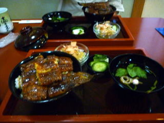 | 「境川」にも立ち寄ったが、ここも渇水状態で釣りにならず、昼食の為にいつもの蕎麦やさんに行ったが運悪くここも「本日休業」でガックリである。 しかたなく黒部まで戻り「丸亀製麺」で釜揚げうどんを食べた。でもやはり丸亀、美味しいですね。 この後は愛本橋の黒部川で遊んでから宿に戻り少し仮眠をした。 夕食は「黄鶴楼」、まさかここもお休み?と心配したが、念の為に昼間確認澄みで大丈夫でした。 今回はつかさくんに生ビールを譲り、私はノンアルコール。美味しい中華料理に満足でした。 だが、この夜、ついにつかさくんも蜂の餌食となってしまいました。 翌朝、台風も心配なので早めに出発し、お土産を買ったあとは一目散に帰ったが雨になってしまった。 でも、多治見の「うなぎや」で上鰻丼はちゃんと平らげました。 |